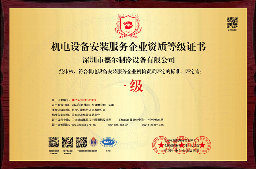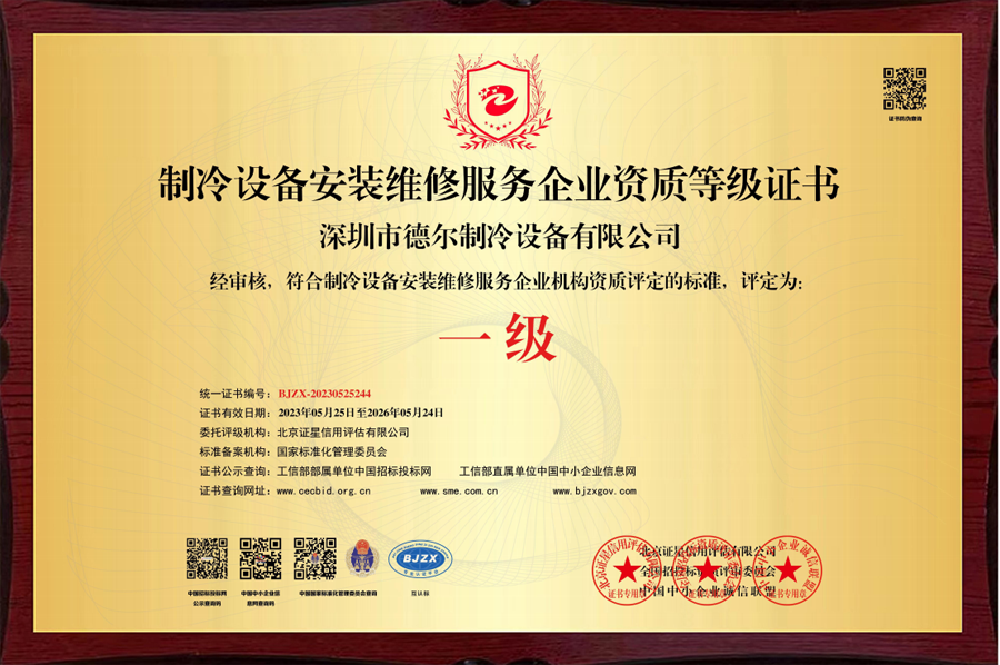 制冷設備安裝一級資質證書