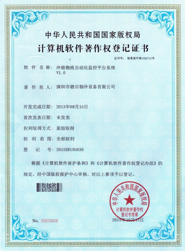 冷鏈物流自動化監(jiān)控平臺系統(tǒng) 軟件著作權證書