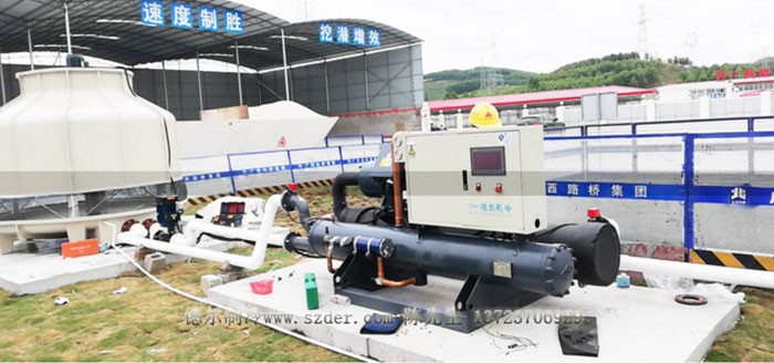 8、中鐵七局廣明高速祈福山隧道混凝土工程臺架式混凝土冷水機(jī)