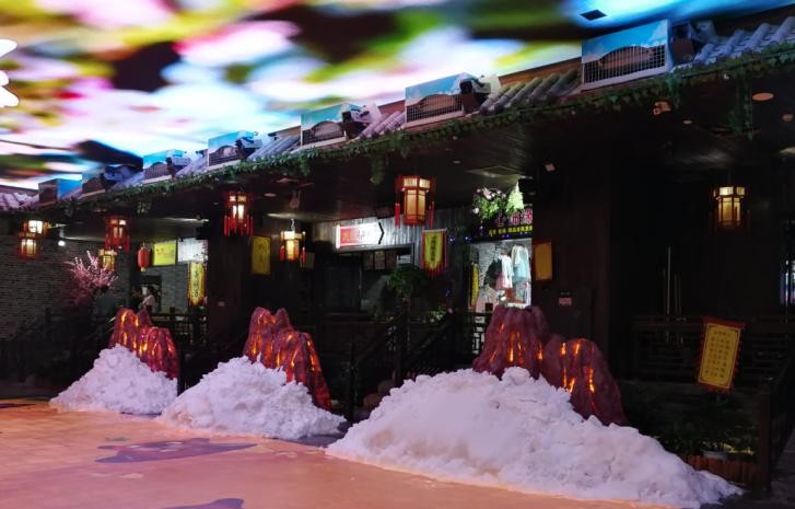 瞬間噴發(fā)大量雪粉,制造人群尖叫特別效果。大量雪花,極易在地面形成積雪,視覺沖擊強(qiáng)烈。