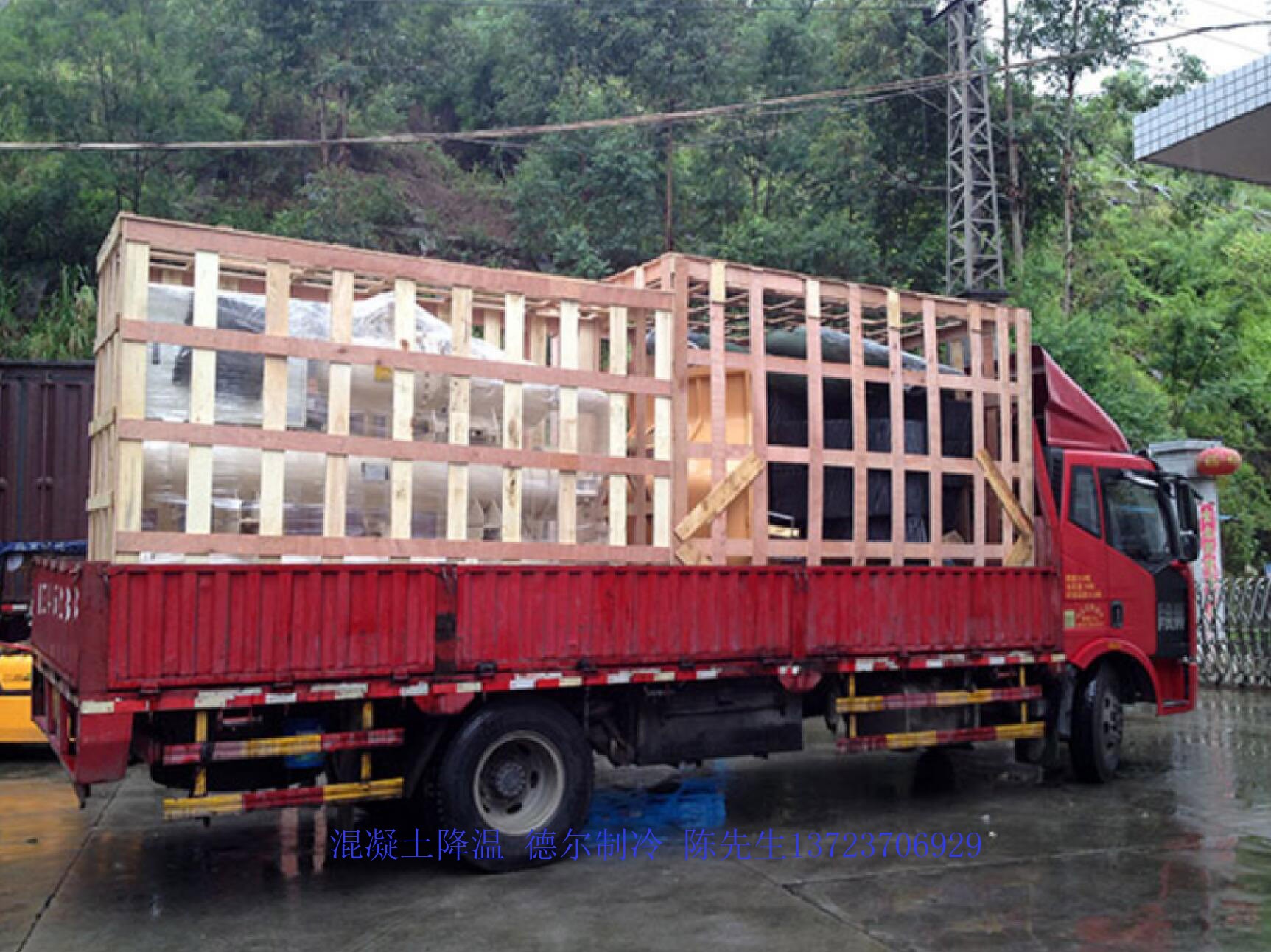 南海海洋地處中國南部海域,常年高溫,混凝土工程易受高溫影響,造成工程品質(zhì)下降。公交二公局以專業(yè)化生產(chǎn)標準進行混凝土施工,通過采購我司混凝土專用冷水機,對混凝土進行有效的攪拌降溫和冷卻降溫,使混凝土的攪拌與凝固過程處于安全可靠的生產(chǎn)控制工藝,確保優(yōu)質(zhì)工程。 冷水機成套設(shè)備裝車中