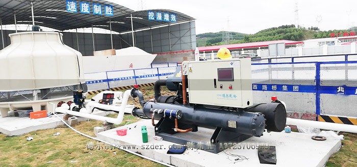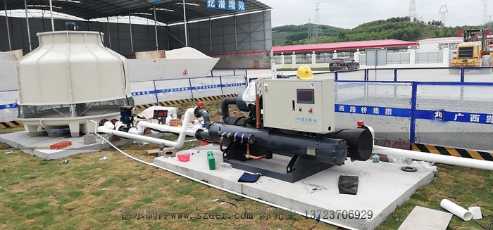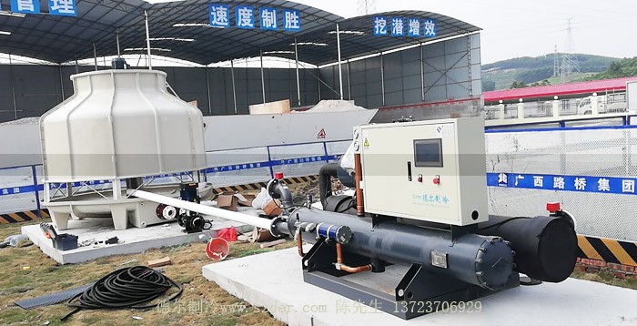 新柳南高速公路6標段配套我司生產(chǎn)的混凝土專用冷水機安裝中
