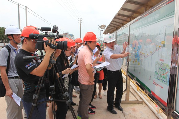 2014年6月5日,廣明高速SG06標(biāo)項(xiàng)目部作為廣明高速媒體行活動(dòng)的第一站迎來(lái)了境內(nèi)外24家媒體的30余位記者,分別就項(xiàng)目亮點(diǎn)、施工進(jìn)展等方面進(jìn)行了全面詳細(xì)的說(shuō)明并接受專題采訪。