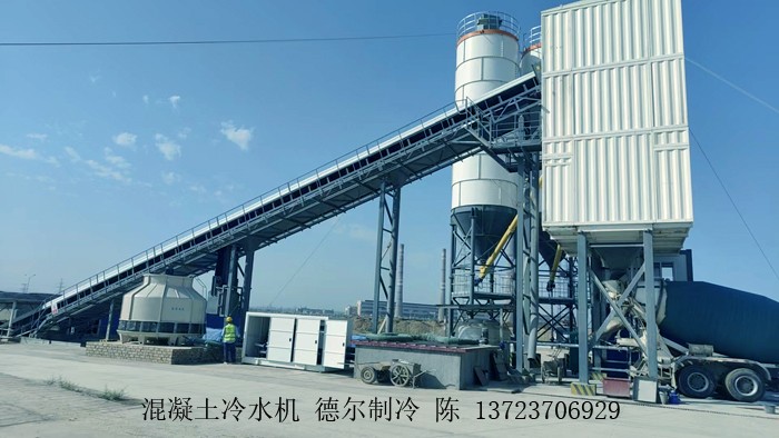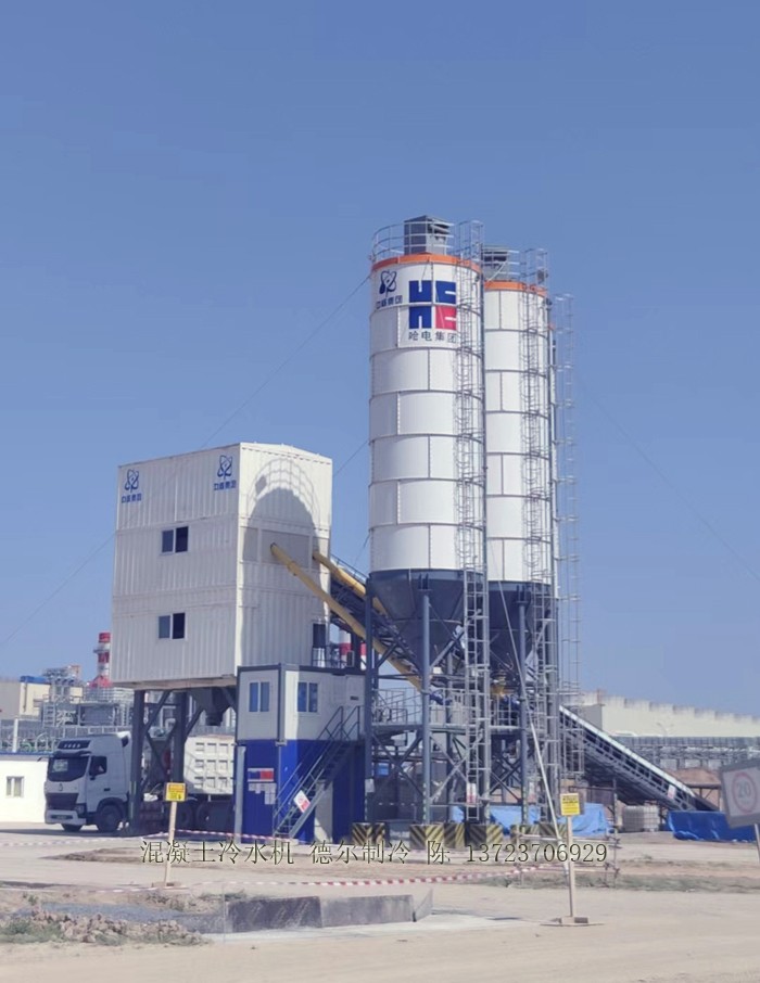 在中冀建勘混凝土攪拌站,混凝土冷水機(jī)為攪拌站提供低溫冷水,為混凝土降溫。
